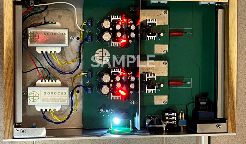 This modular design—found throughout the Sonocus line—delivers major advantages: improved layout performance, superior noise suppression, easy serviceability, and most importantly, the ability to alter the amplifier’s sonic character and output parameters themselves.